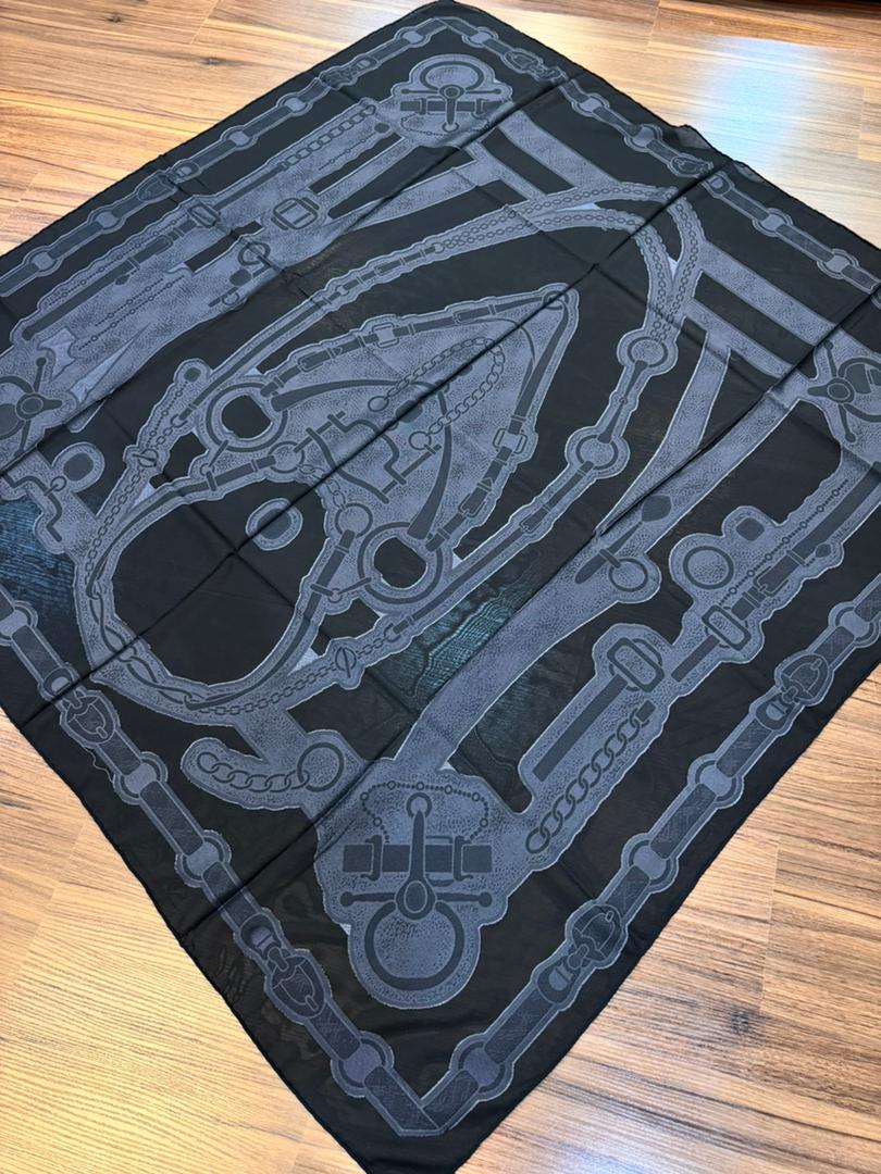 روسري كرپ ابريشم دووره قواره ١٤٠ دور دست دوز