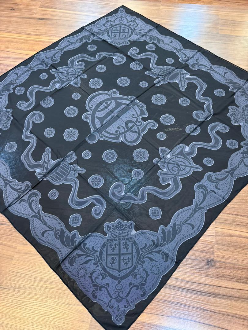 روسري كرپ ابريشم دووره قواره ١٤٠ دور دست دوز