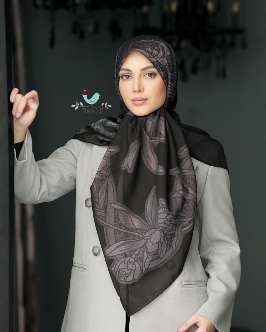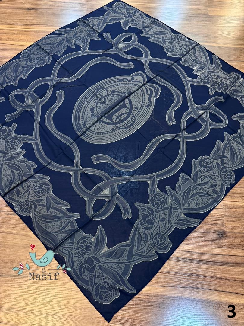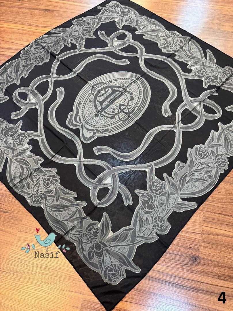روسري كرپ ابريشم دووره قواره ١٤٠ دور دست دوز