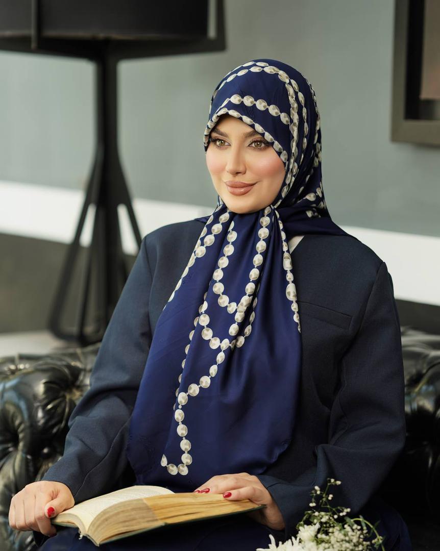 روسري ابريشم ژاكارد به عرض ١٣٠ دور دست دوز