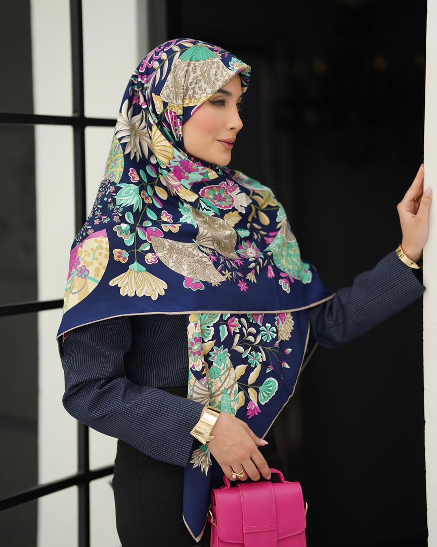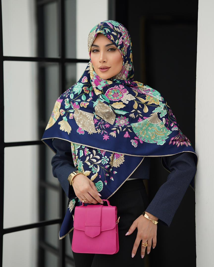 روسري ابريشم ژاكارد وارداتي با كيفيت عالي به عرض ١٣٠ دور دست دو زمناسب استايل با چادر ارسال رایگان پستی