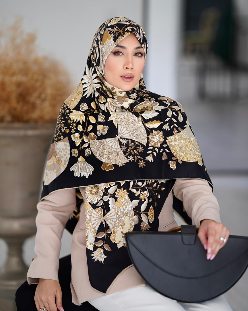 روسري ابريشم ژاكارد وارداتي با كيفيت عالي به عرض ١٣٠ دور دست دو زمناسب استايل با چادر ارسال رایگان پستی
