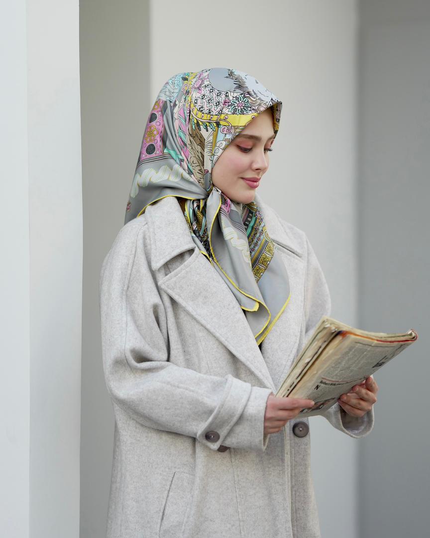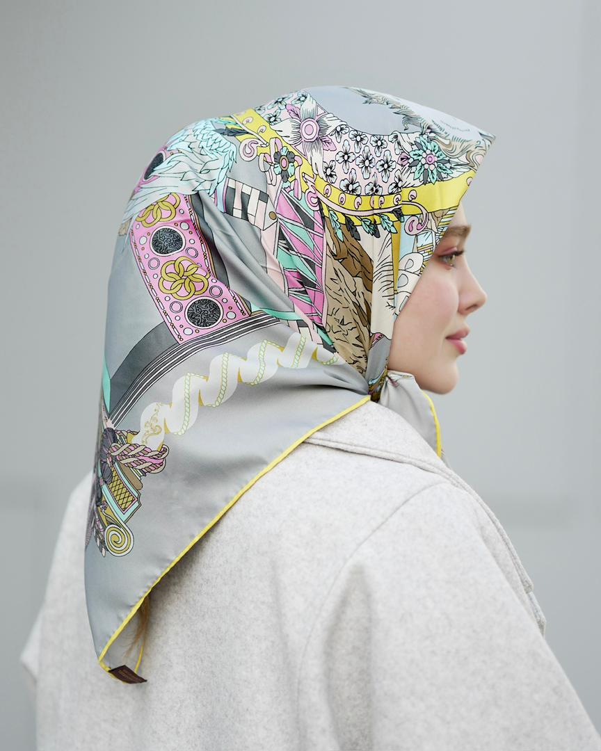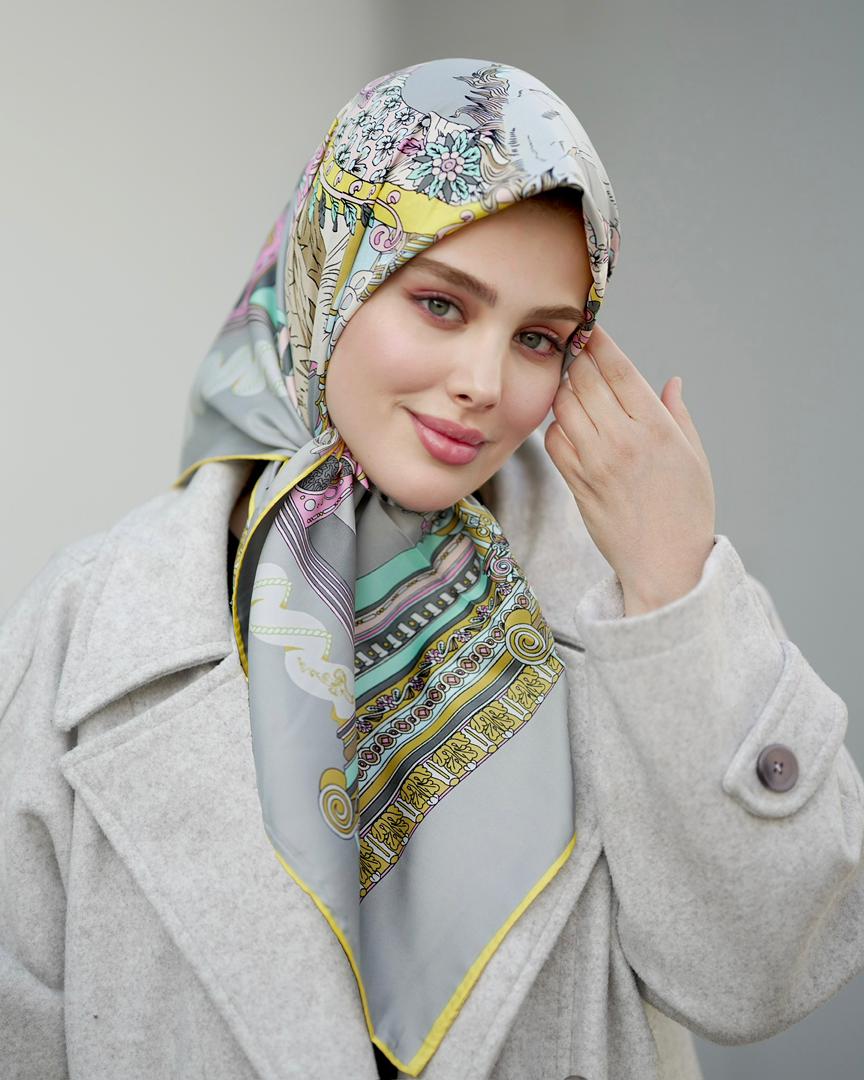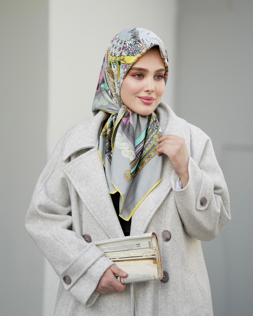 روسري توييل ابريشم كجراه به عرض ٩٠ دور دست دوز وارداتي