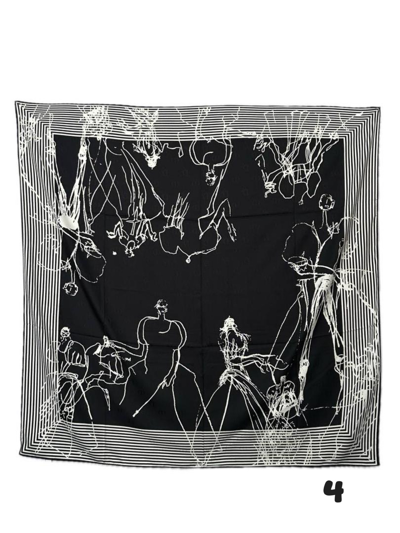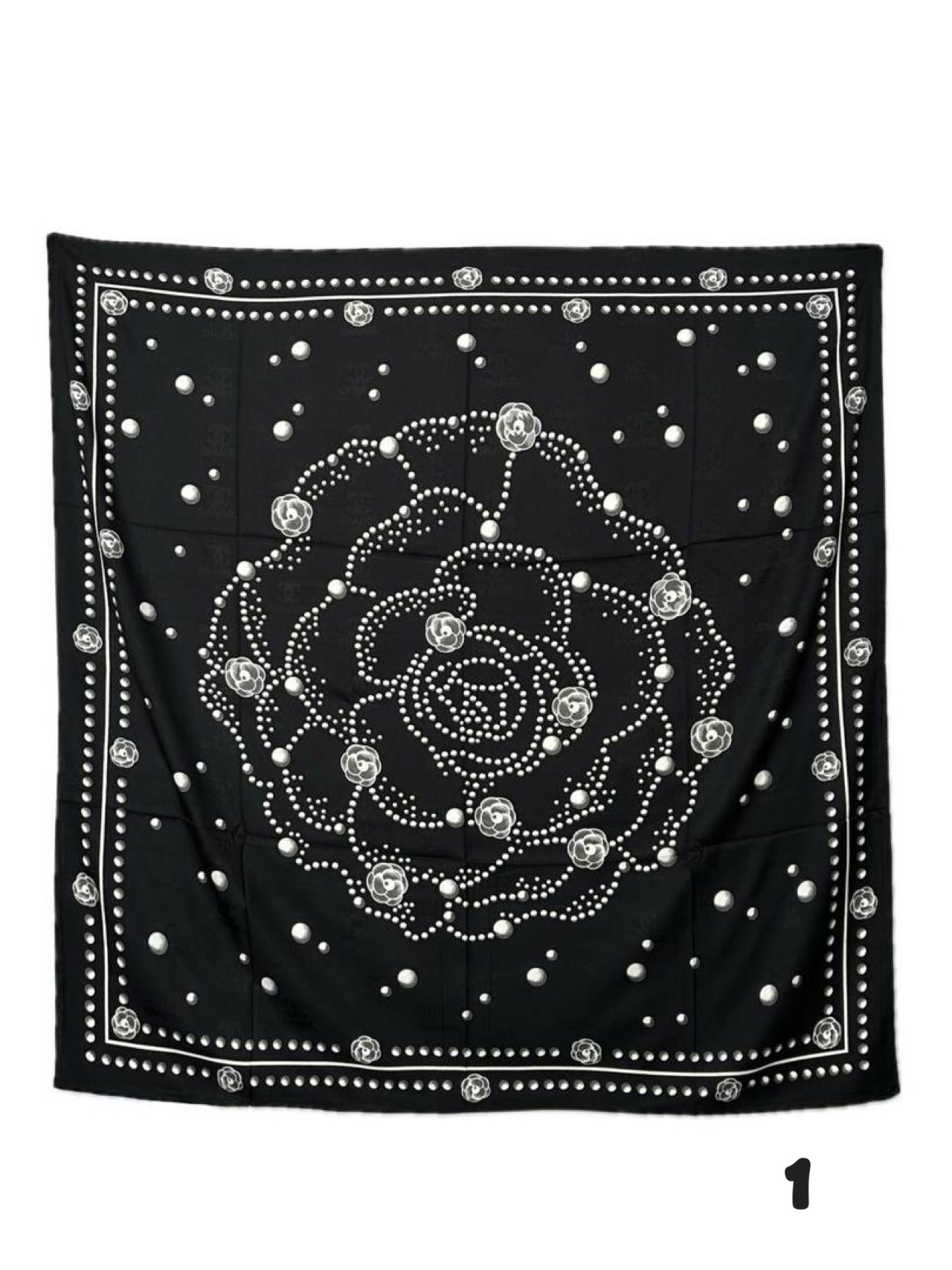 روسري ابريشم ژاكارد قواره ١٢٠ مجلسي و شيك ، دور دست دوز وارداتي