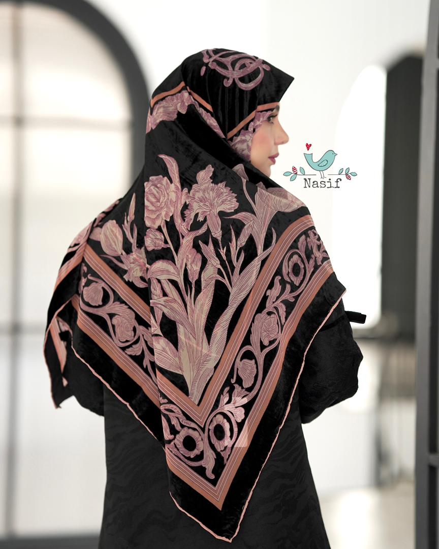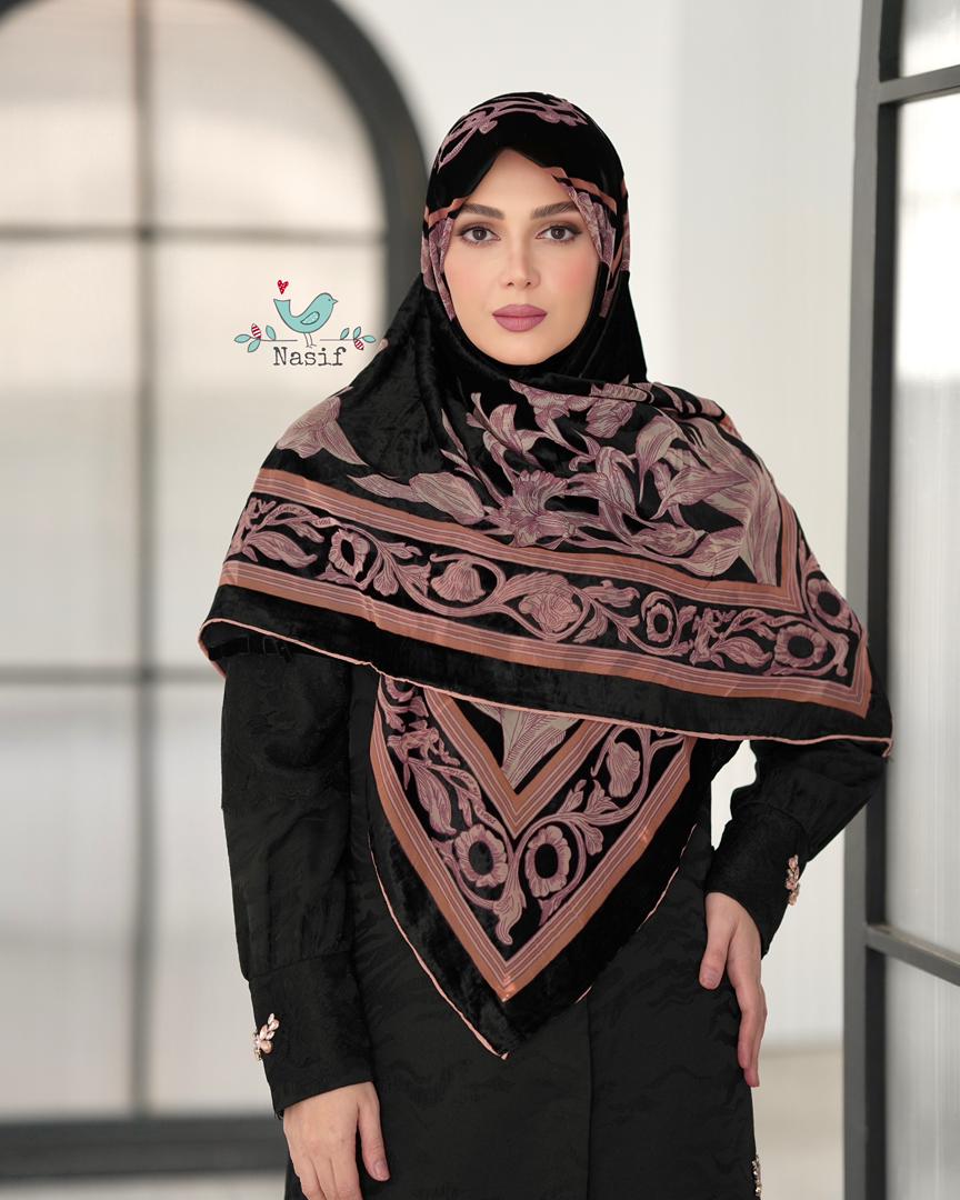 روسري مخمل ابريشم اورجنال قواره ١٣٠ دور دست دوز با كيفيت عالي