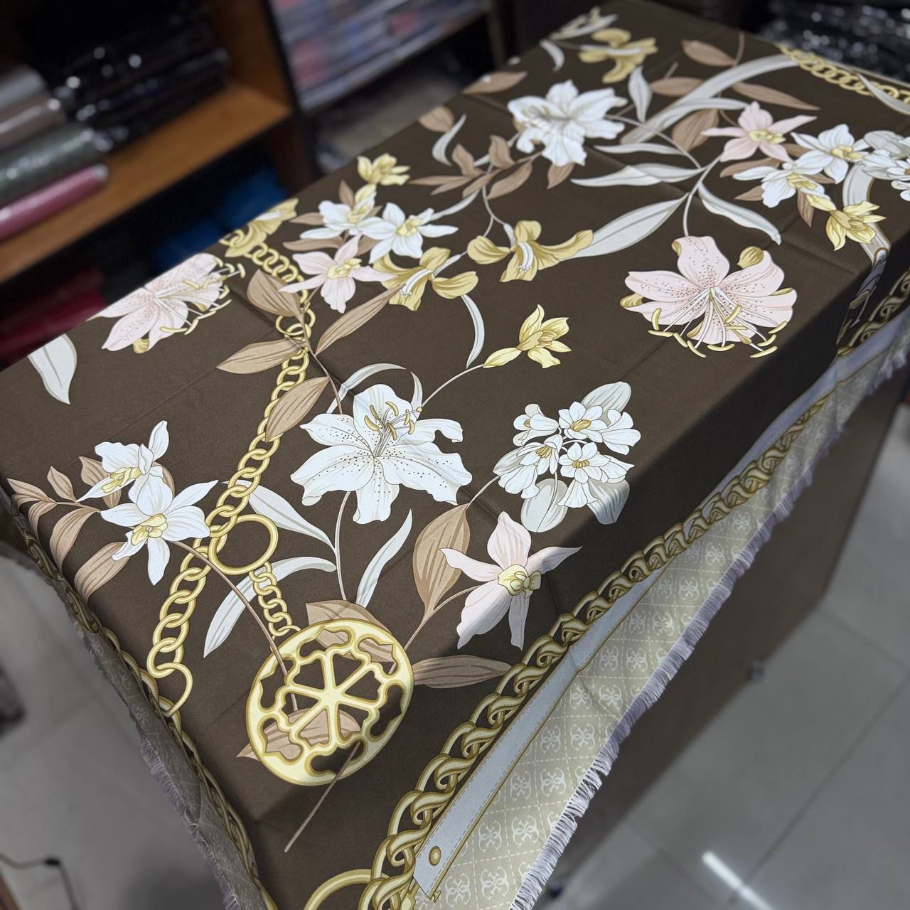 روسري ابريشم كجراه قواره ١١٠ ريشه سوزني با كيفيت و ايست عالي