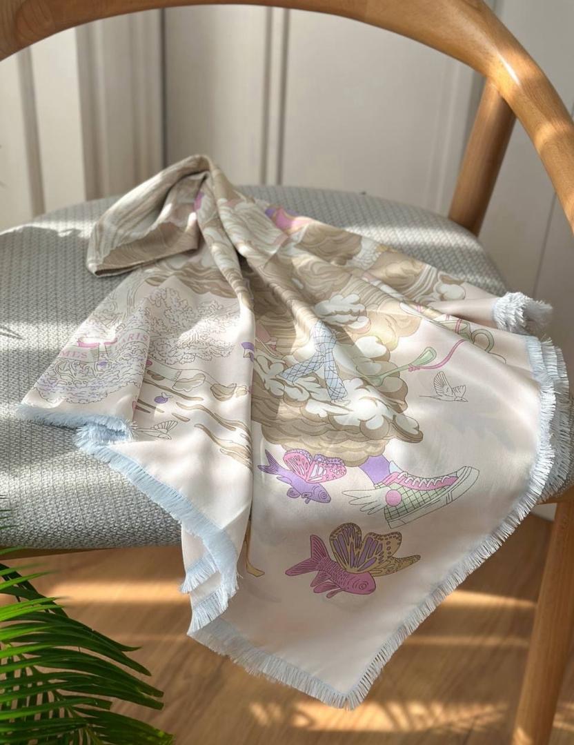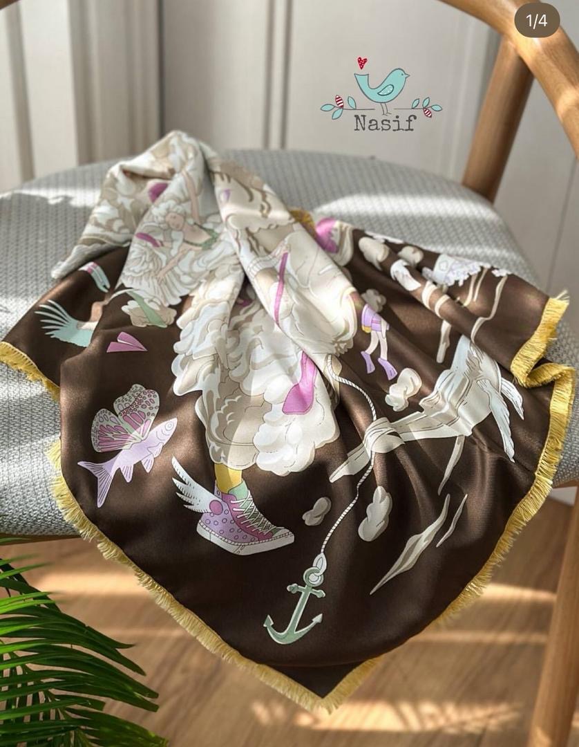 روسري ابريشم كجراه قواره ١١٠ ريشه سوزني كيفيت عالي