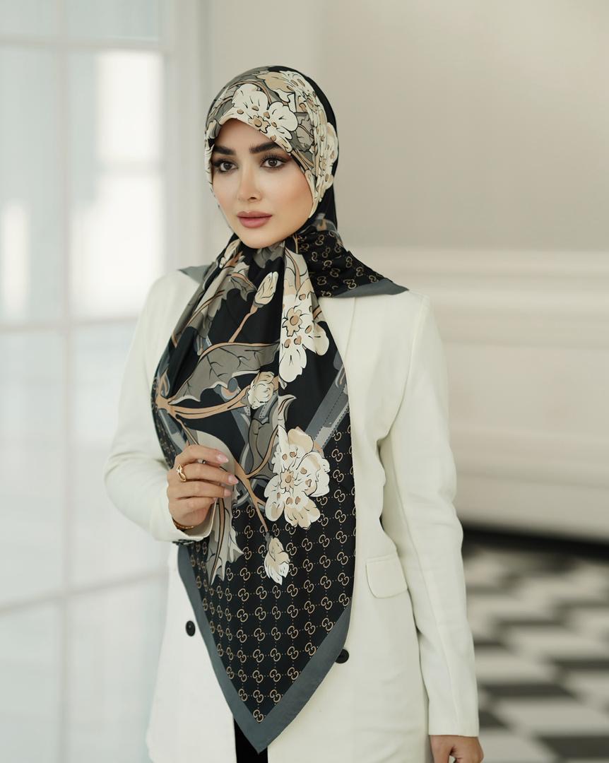 روسري ابريشم توييل كجراه قواره ١٣٠ دور دست دوز ، ارسال رایگان پستی