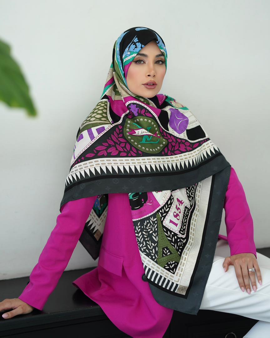 روسری مجلسي ابريشم ژاكارد وارداتي با كيفيت عالي دور دست دوز ، بهترين براي استايل مجلسي و استايل با چادر ، ارسال رايگان پستی