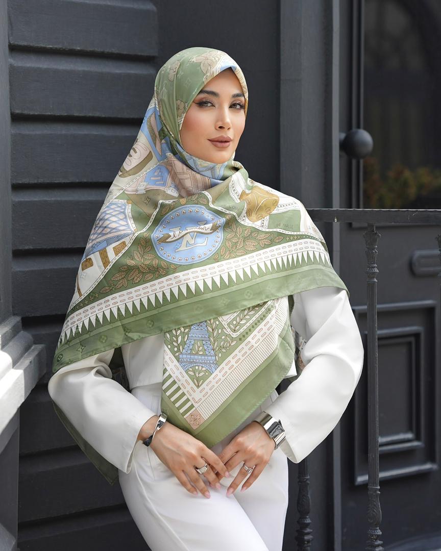 روسری مجلسي ابريشم ژاكارد وارداتي با كيفيت عالي دور دست دوز ، بهترين براي استايل مجلسي و استايل با چادر ، ارسال رايگان پستی