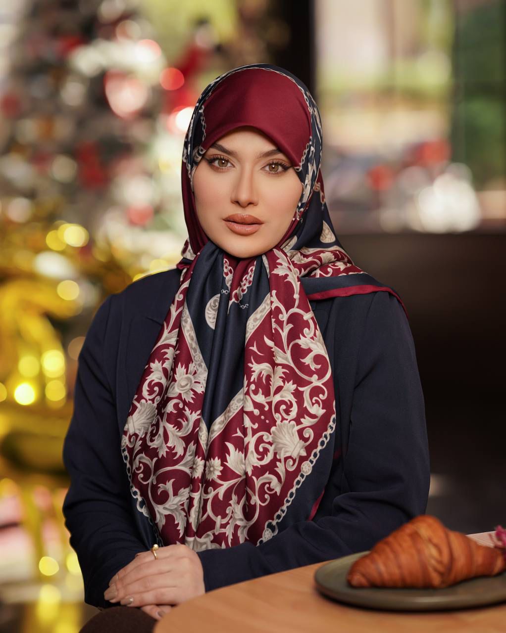 روسري ابريشم توييل كجراه قواره ١٣٠ دور دست دوز ، ارسال رایگان پستی