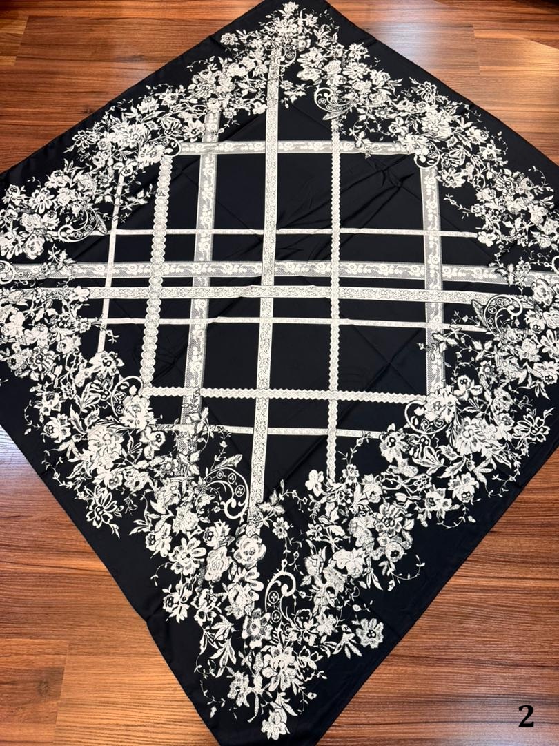روسري ابريشم ژاكارد با كيفيت عالي ، وارداتي درجه يك به قواره ١٤٠ دور دست دوز