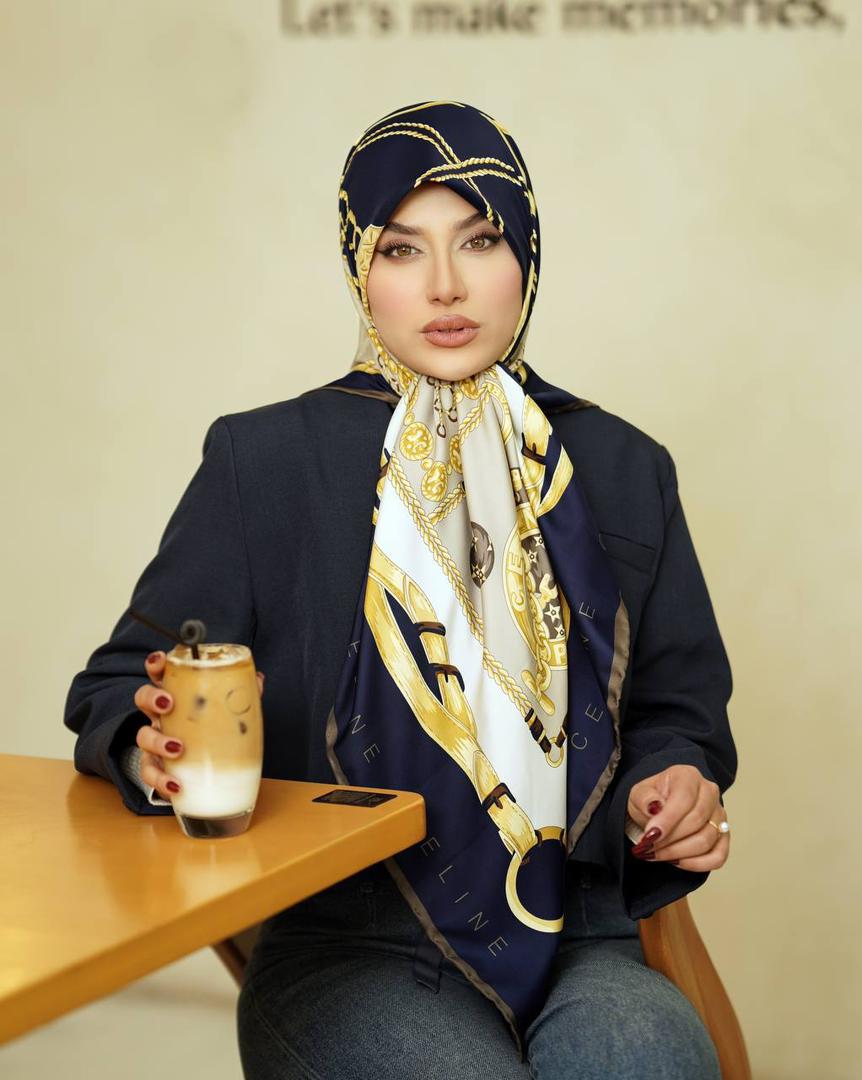 روسري مجلسی ابريشم توييل كجراه با ايستايي و كيفيت عالي دور دست دوز ، توليد درجه يك وطني به قواره ١٣٠ بهترين براي استايل با چادر