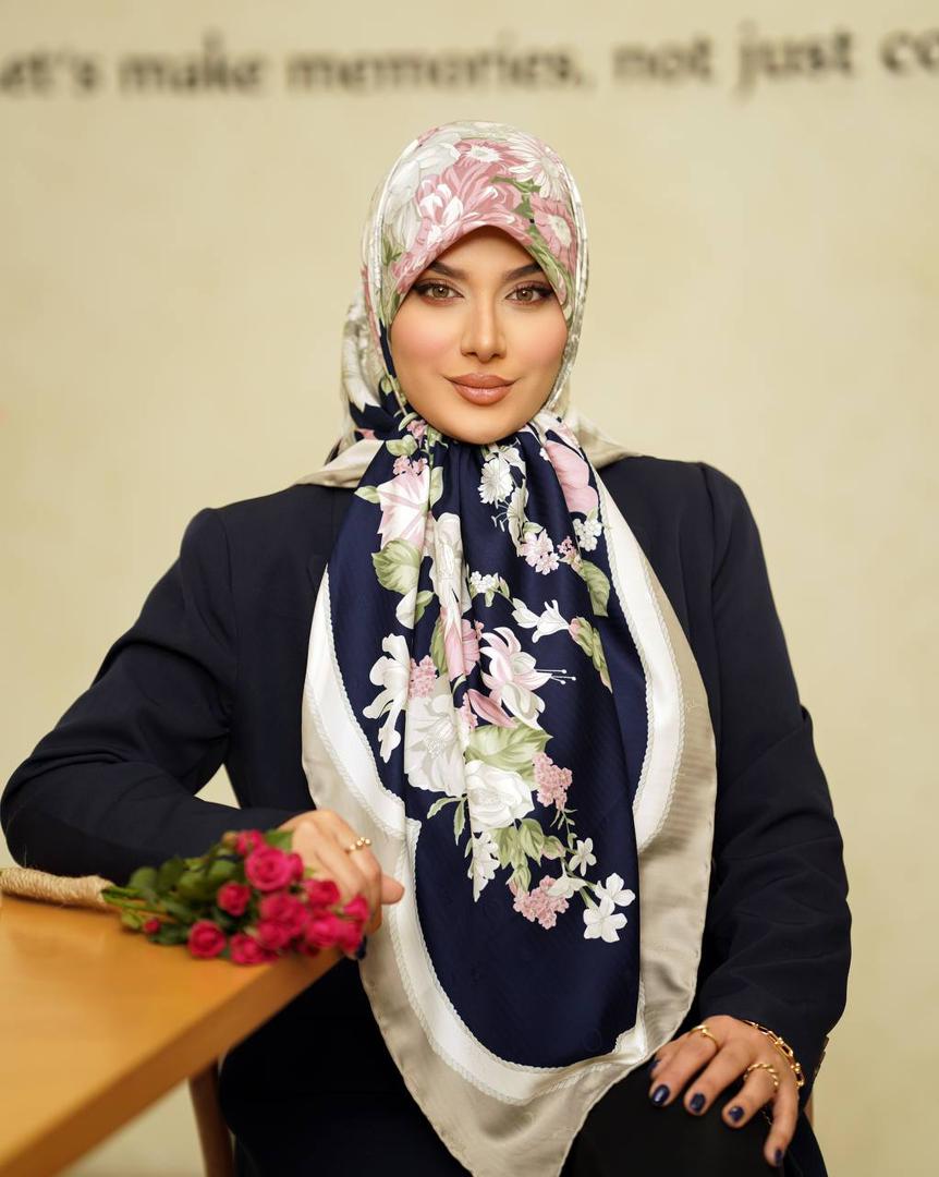روسري مجلسي ابريشم ژاكارد با ايستايي و كيفيت عالي ، دور دست دوز توليد درجه يك وطني به قواره ١٣٠ بهترين براي استايل با چادر