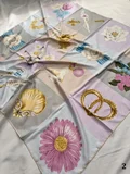 روسري مجلسي ابريشم ژاكارد درجه يك ، بسيار با كيفيت بدون چروكي با ايستايي عالي به قواره ١١٠ دور دست دوز