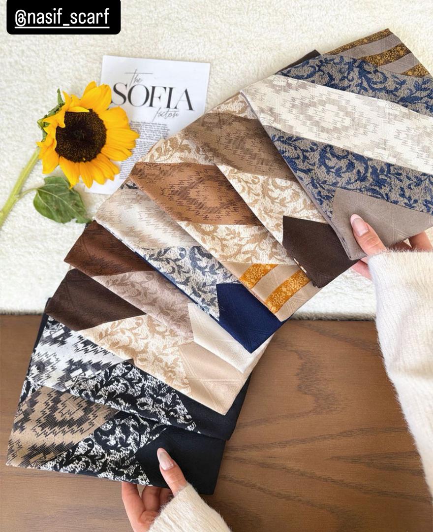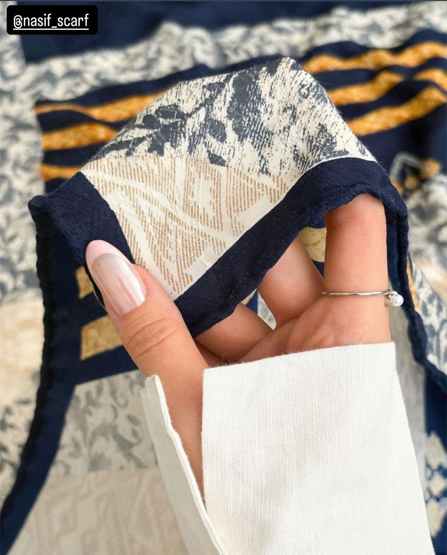 روسري نخ ابريشم مناسب ٤ فصل خوش جنس و لطيف با ايستايي عالي بهترين براي استايل با چادر که اصلا ليز نيست ، قواره ١١٠ دور دست دوز